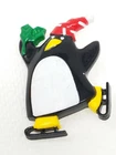 Vintage 1989 Hallmark Cards Red Hat Skating Penguin Brooch Pin In good condition for age. Shows signs of age and usage. Could use thorough cleaning, but left to collector discretion. Measures 1.25" wide and 1.75" tall. Please see photos.