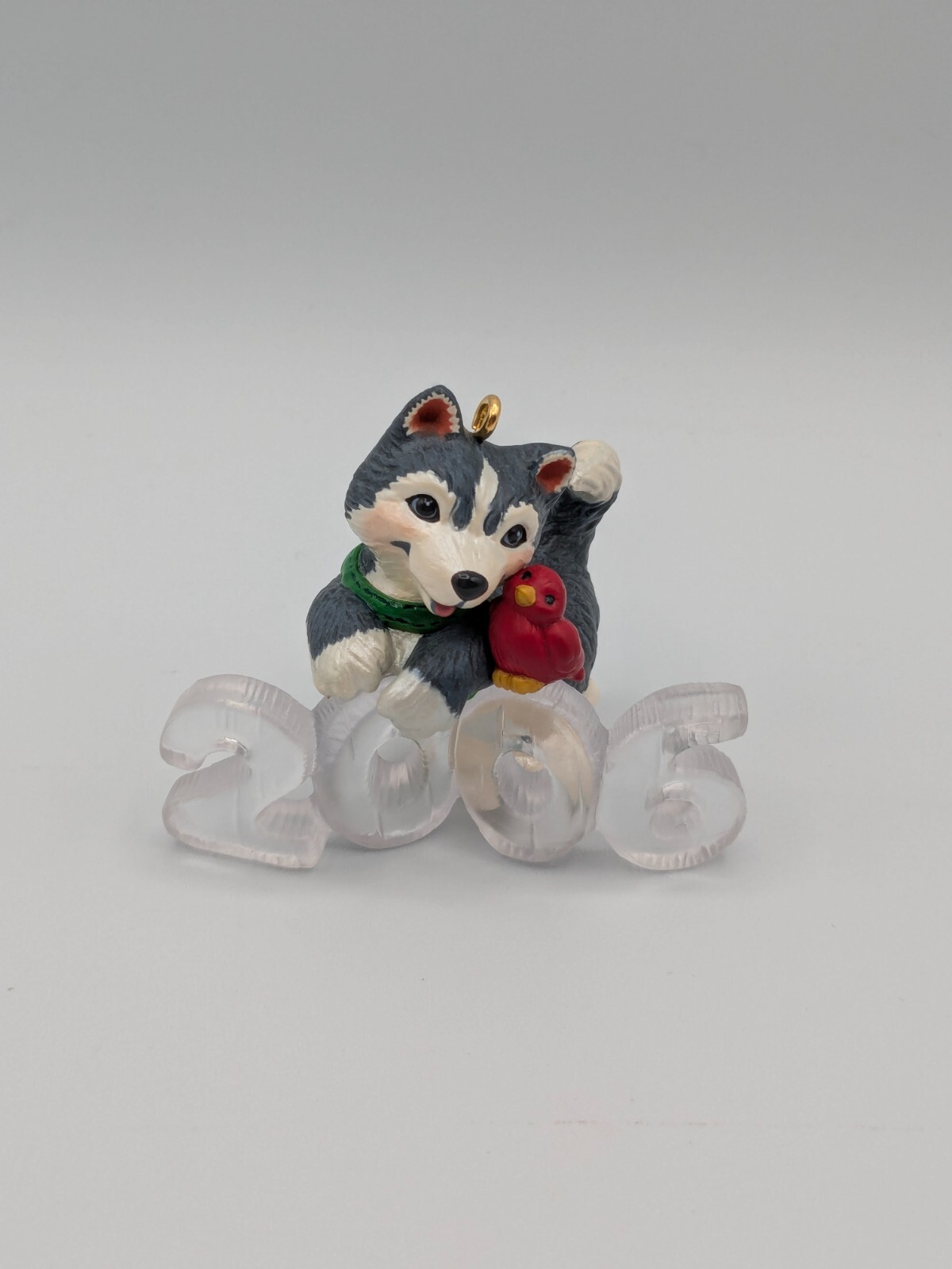 Celebrate 2006 with this Hallmark Keepsake ornament, the seventh in the Cool Decade Series. This handcrafted design features an adorable pup ready for winter fun. The box includes the quote: "2006 will be just great - another year to celebrate. This pup's much closer to his dream - to someday lead a dogsled team!" Pre-owned, the ornament is in excellent condition, while the box shows minor wear due to age. We ship same day / next day! This item comes from a smoke-free and dog-free home. Our ornaments are carefully packed -- bubble wrapped and always shipped in a box -- to guarantee their safe arrival to you. hallmark, hallmark ornament, cool decade, hallmark keepsake, hallmark keepsake ornament, husky, puppy, cb treasures
