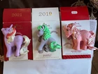 Hello pony pals! This is for a lot of 3 Hallmark Keepsake My Little Pony. You will get Seashell, Cotton Candy and Powder. Seashell is new, the other 2 appear to have been used and I can only tell this because of the tissue paper inside. You can see the paper has been unwrapped and wrapped again over the years. The ornaments themselves appear to be in great condition, but please see all photos for yourself as I am no expert. Please ask any questions or request additional photos as all sales are final. Thank you so much for looking!!
