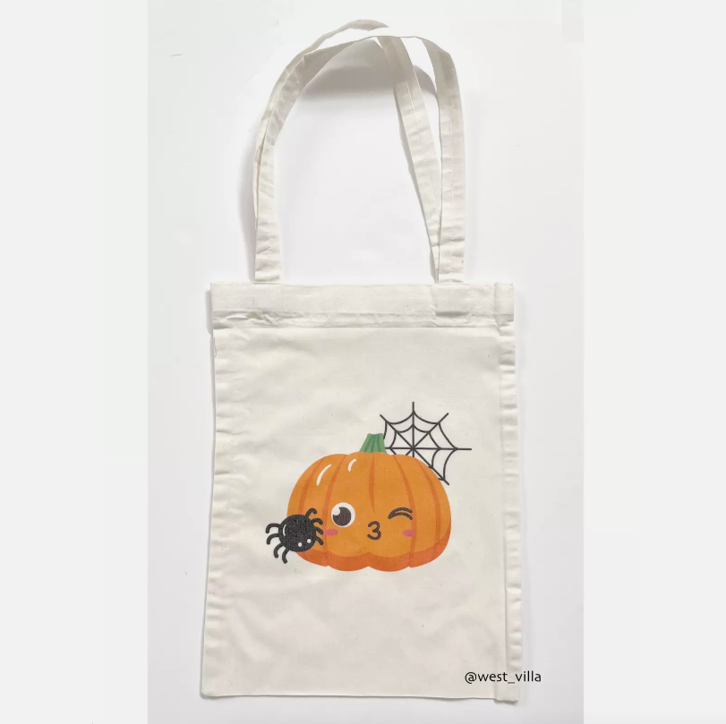Give two treats in one when you use this spooky canvas tote bag to hide a Halloween gift for a kid. They can use the sturdy tote to haul home Halloween candy after a night of trick-or-treating. Reusable tote makes a great choice and might just become a Halloween tradition. Cotton canvas tote bag features screen-printed pumpkin & spider. Fabric gift bags and gift wrap can be used again and again, making them the perfect gift wrap option. Approx. 12" W x 15.75" H Please check my other listings, for other Halloween design tote bag!
