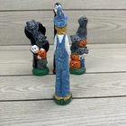 Get ready for Halloween with these spooky pencil figures! Featuring bats, wolves, a vampire, and a scarecrow, these handmade ceramic and plastic figurines will add a haunting touch to your holiday decor. Perfect for collectors of Halloween memorabilia, these unique items were crafted in the early 2000s and come from an unknown country or region of manufacture. Whether you're decorating your home or office for Halloween, these multicolored pencil figures are sure to be a hit. Use them as props for your Halloween party or display them on your desk for a festive touch. Don't miss out on the opportunity to add these one-of-a-kind collectibles to your collection.