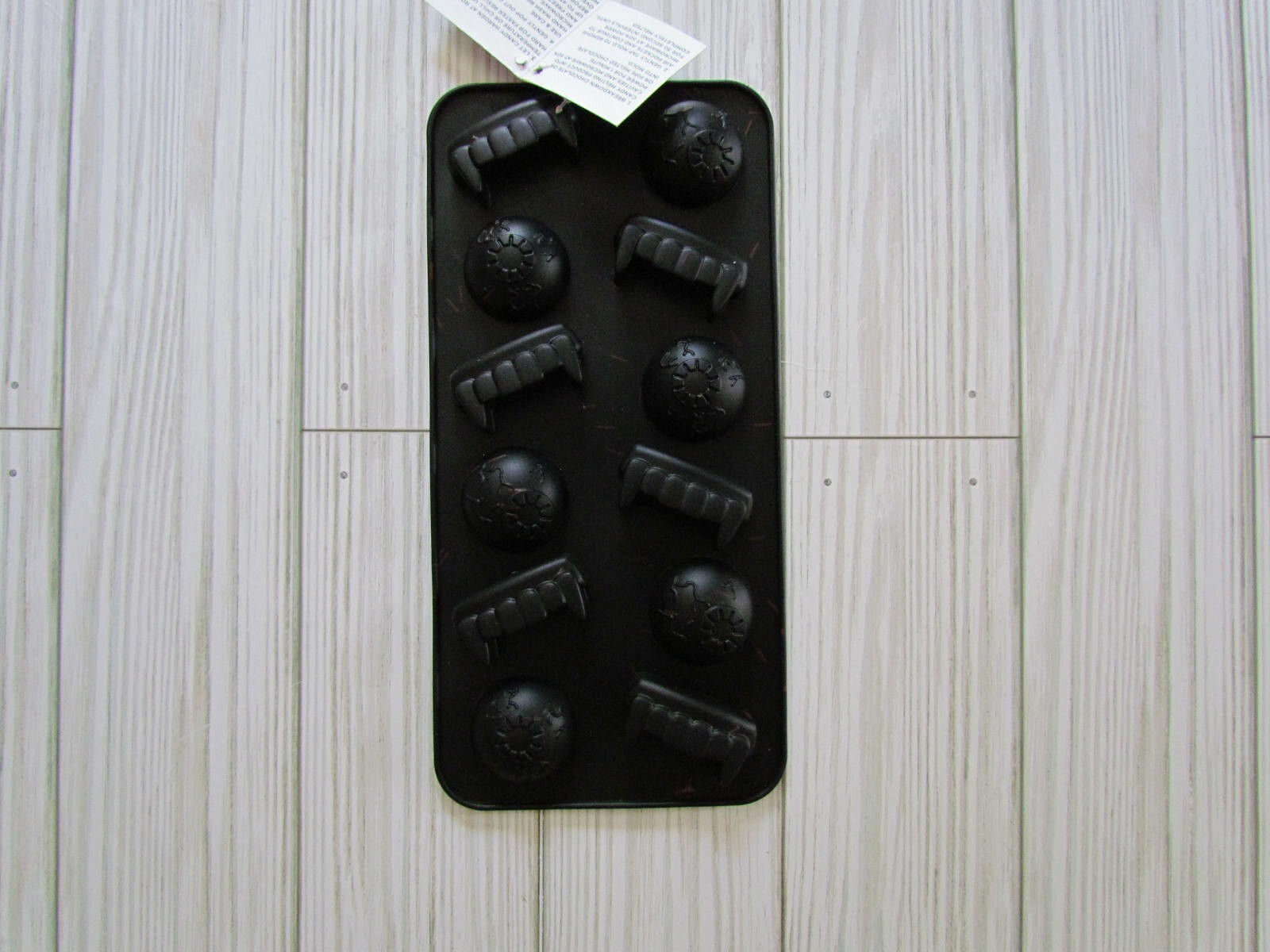 Set of 3 Silicone Candy Molds by Stir. 1946-9105 -This mold features Vampire theme and has 12 cavities. 1946-9139 - This mold features a skeleton theme and has 20 cavities. 1946-9097 - This Mold features hatches / knives and has 12 cavities. These are all new with tags.