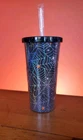 Halloween Spider Web Tumbler Plastic BPA Free Screw On Lid And Straw New condition never used Halloween spider web tumbler with screw on lid Does have a couple of cracks in outer clear plastic but does not affect the function (see pictures) but hard to see with the spider web design Also has a sticky patch where the label was which I'm sure will wash off with soapy water Thanks for looking Lot