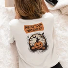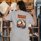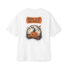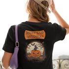 Introducing our Halloween special back printed t shirt for women. Made with comfort fit and a round neck design, this t shirt is perfect for the spooky holiday. The unique back print adds a touch of style to your wardrobe. Get ready for Halloween in style with our special t shirt. FOR OVERSIZED LOOK PLEASE CHOOSE ONE TO TWO SIZES UP THAN YOUR USUAL SIZE DEPENDING ON YOUR CHOICE. Overview: Comfort and style are the name of the game for these custom boxy t-shirts. Their relaxed fit along with the dropped shoulders add that modern aesthetic that can blend into any occasion. All shirts are made with 100% airlume, ring-spun and combed cotton for extra softness. (Athletic Heather is 90% / 10% airlume combed and ring-spun cotton / polyester) Fabric: 100% airlume combed and ring-spun cotton (fiber content may vary for different colors medium fabric (6.0 oz/yd² (170 g/m²)) Fit: Dropped shoulders give the garment a relaxed fit and feel. Fabric Blends: Solid colors are 100% cotton; Athletic Heather is 90% cotton, 10% polyester.