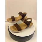 Step into effortless style and comfort with these Halsa Dominica sandals. The rich dark brown leather features a subtle embossed texture on the strap, adding a touch of sophisticated detail to your look. Designed for all-day wear, the comfortable footbed and supportive wedge heel make these sandals perfect for exploring a new city or enjoying a casual day out. Style: Strappy Department: Women Upper Material: Leather UK Shoe Size: 4.5 AU Shoe Size: 8.5 Heel Style: Flat EU Shoe Size: 36.5 Features: Adjustable Strap, Comfort, Padded, Arch Support, Straps Closure: Buckle Pattern: Solid Accents: Studded Model: DOMINICA Heel Height: Flat (Under 1 in) Type: Sandal Keywords: Halsa Footwear, leather sandals, embossed detail, wedge shoes, comfort footwear, women's fashion, casual sandals, summer shoes, travel shoes, everyday wear, versatile style