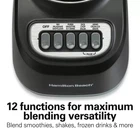 ULTRA-SMOOTH RESULTS WITH PATENTED WAVE~ACTION SYSTEM: As you blend, ingredients are continuously forced down into the blades and circulated around the jar — thoroughly crushing the hardest foods with ease. 3 YEAR LIMITED WARRANTY: Built for long-lasting performance, this electric blender is backed by a 3 year limited warranty by Hamilton Beach. Hamilton Beach Smoothie Blender, 48 oz. Jar, 12 Blending Functions, Black, New, 50180: 12 FUNCTIONS FOR MAXIMUM BLENDING VERSATILITY: Easily blend smoothies, shakes, frozen drinks and more. The 5 simple buttons clearly indicate each function, so there's no guesswork. NEW QUIETER BLENDING DESIGN: When quieter blending matters, the Hamilton Beach blender delivers. Its new design minimizes airflow noise during operation. POWERFUL BLENDING PERFORMANCE: With 650 watts of peak blending power and stainless steel Ice Sabre® blades, this smoothie blender gives you all the power you need to crush ice and blend frozen fruit with ease.