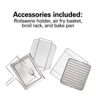 About This Product The Hamilton Beach sure-crisp digital air fryer toaster oven with rotisserie combines sure-crisp air frying functionality with the versatility of a rotisserie and classic toaster oven. You get the even crisping and browning of air frying right on your countertop, along with the ability to rotisserie, toast, bake, and broil. Using little to no oil, the sure-crisp function turns fresh or frozen french fries, chicken wings, steaks, fish, vegetables, and more into crispy deliciousness that you and your family will love. The Hamilton Beach sure-crisp digital air fryer toaster oven provides plenty of cooking space and lets you rotisserie a whole chicken, cook a 12" pizza, or toast 6 slices of bread. The intuitive controls include 6 settings to cover every cooking need and a digital LED panel to keep you informed about the preheating status, remaining cooking time, and current temperature. The oven features 3 rack positions for cooking flexibility and includes a mesh air-fry basket, rotisserie accessories, baking pan, broil rack, and slide-out crumb tray." Features The sure crisp air fry convection function circulates air around food as it cooks creating crispy and delicious fries chicken wings steaks fish vegetables and more. Go from air frying chicken on Friday to cooking a whole rotisserie chicken on Sunday. Additional settings for pizza, toast, bake, and broil add versatility and have a beep at the end of the cycle. This toaster oven with an air fryer has plenty of room for everything from a whole rotisserie chicken, 12" pizza, 6 slices of toast, or a 9" x 12" baking pan. Three rack positions provide flexibility to fit a variety of food. The air fryer oven comes with all the accessories you need to air fry, bake, broil, and toast, plus a slide-out crumb tray. LCD screen indicates your selected function, the remaining cooking time, and the temperature. Includes adjustable temperature dial and cooking timer with auto shutoff and stay-on setting. Product Dimensions Other Dimensions Overall 14,013'' H X 20.63'' W X 17.25'' D Overall Product Weight 17 lb. Details Product Type Toaster Oven Material Stainless Steel Color / Finish Silver Timer Yes Plug-In Yes Wattage 1,500 Watt Imported Yes Product Care Hand wash only Warranty Commercial Warranty No
