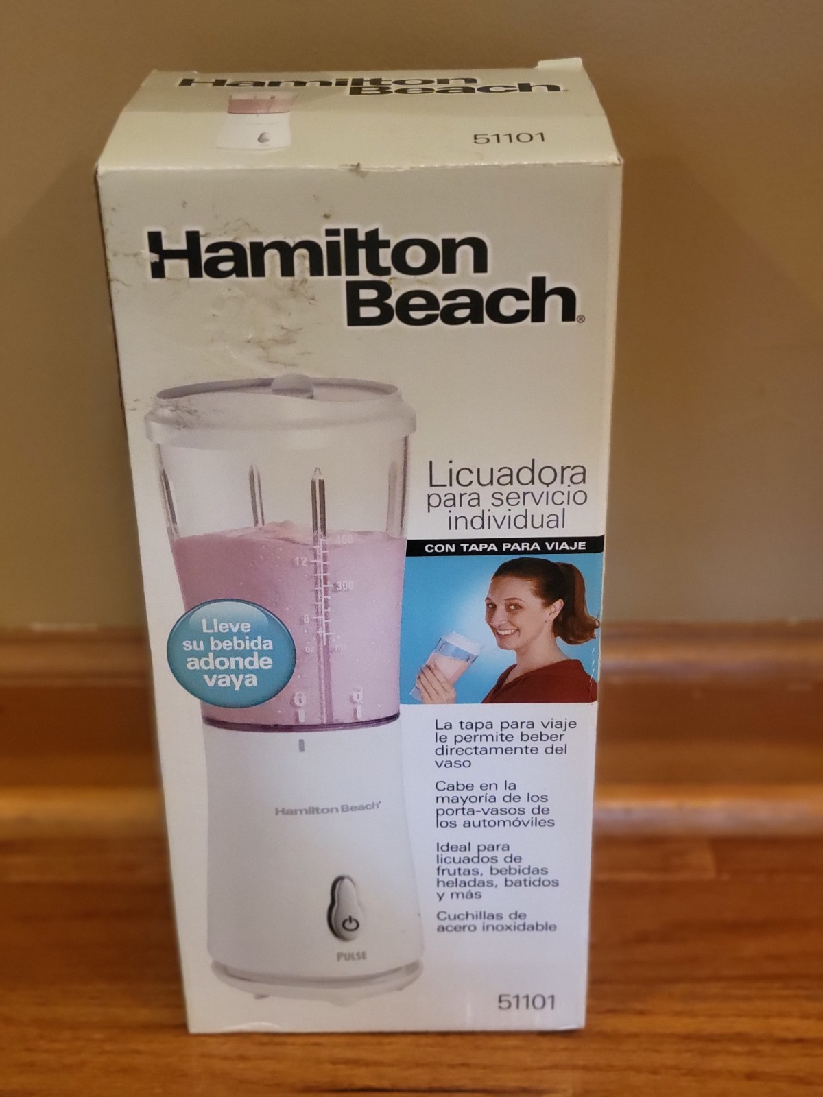The Hamilton Beach Personal Single Serve Blender with Travel Lid in White (Model 51101V) is a compact and powerful electric blender perfect for blending smoothies, juices, and frozen drinks. With a stainless steel material and 175W power, this bullet blender boasts a 14 oz capacity and includes components such as a container, center fill cap, blades, lid, and chopper base. Its single speed setting and lightweight design make it ideal for personal use and on-the-go blending, making meal preparation and snack time more convenient and delicious.