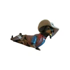 This is an adorable dachshund dog wearing his cowboy outfit and with a sprig of grass in his mouth. Make of quality resin. Measures approximately 6.5 inches long by 4 inches tall. No physical defects.