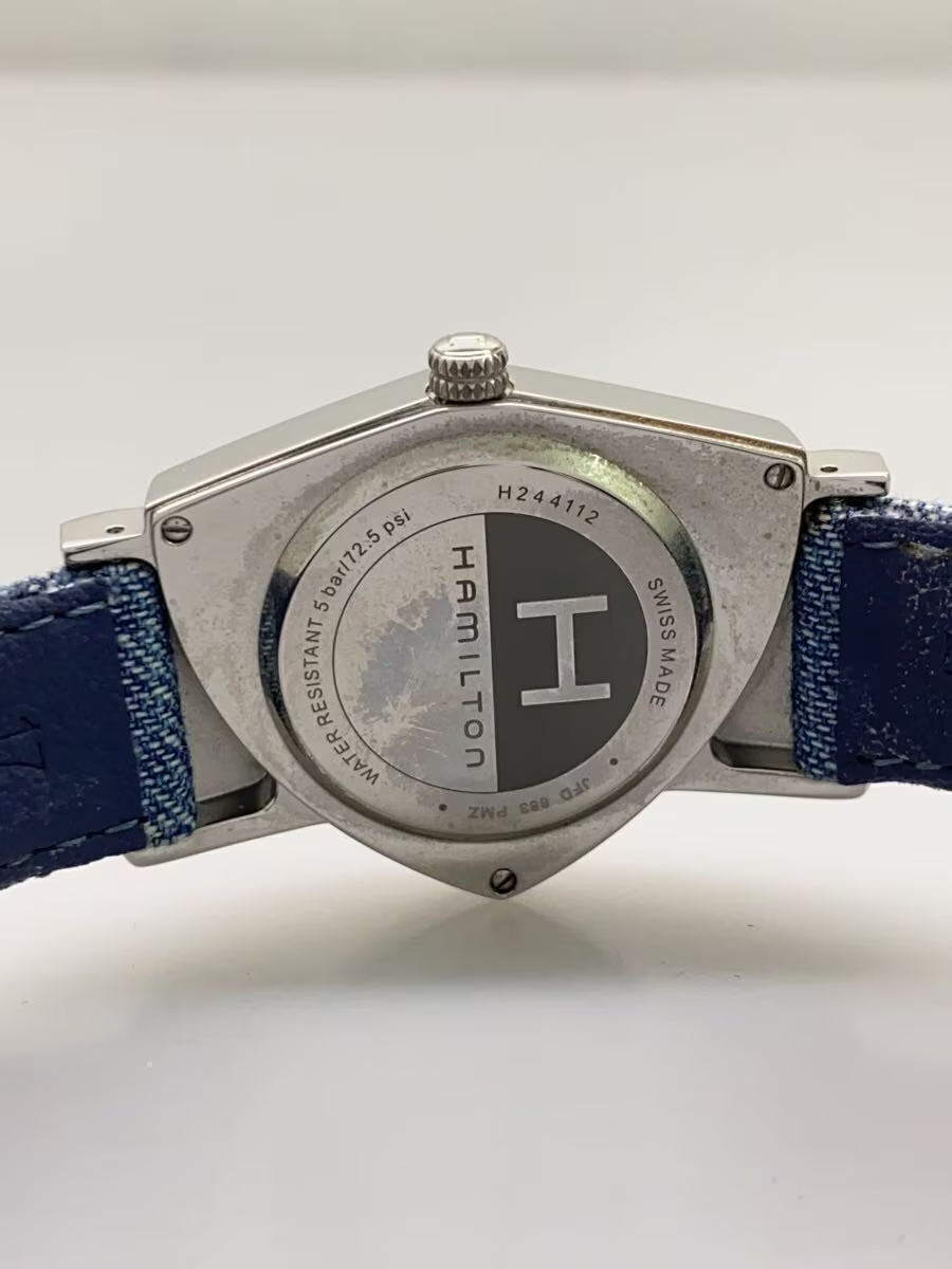 【NEAR MINT BOX】 Hamilton Ventura H244112 Blue Dial Men's Quartz Watch From JAPAN W2401-21 Description ■ Total Condition TOP MINT Pre-owned, Almost new item MINT Pre-owned, Like new NEAR MINT Pre-owned, almost no signs of use EXCELLENT+5 Pre-owned, minimal signs of use EXCELLENT Pre-owned, heavy signs of use VERY GOOD poor appearance For Parts Repair is required. ■ Model Number H244112 ■ Appearance Beautiful condition. Slightly scuffed but no scratches on the windshield. Tiny scuffs from normal use. It shows signs of use. The belt is a little used. *Please check photos. ■ Case Size About 1.29 in (33 mm) ■ Max Belt Size About 7.48 in (190 mm) ■ Functional It works properly. The watch is currently running smoothly, but since it is a battery-powered watch, there is a possibility that it will stop during transportation. Please understand that we do not guarantee that this will happen. Please contact me first for return before you ship it back to me. The postage of the returned goods is a buyer burden. ■ Bundled Items Box, Instruction Manual, Warranty Card All you can see on the picture will be included in a set of a package. Items not pictured are not included. Please refer to the pictures for more details. Please check the pictures and don't hesitate to ask any questions about the item ! Thank you. Payment We accept Pay Pal or Visa , Master Card and Discover . Payment is due within 5 days of the auction end. We will ship the item 3 business days after your payment clears. Shipping I send a product by DHL or Japan Post (EMS) . I attach the tracking number. Please bid it without worrying. Shipping is only available to the address registered in Paypal. Please note that any address not registered in Paypal is not acceptable to ship. Shipping is available from Monday to Friday. Weekends are not available because post office is closed. Returns Unconditional Return Policy Customer service and satisfaction are very important to us. I have an unconditional return policy if notified within 30 of the receipt of the item. All returned items must be the original condition. All return requests must be made within 30 days of the receipt of the item. Please contact me first for return before you ship it back to me. The postage of the returned goods is a buyer burden. International Buyers Please Note: Import duties, taxes, and charges are not included in the item price or shipping cost. These charges are the buyer's responsibility. Please check with your country's customs office to determine what these additional costs will be prior to bidding or buying.