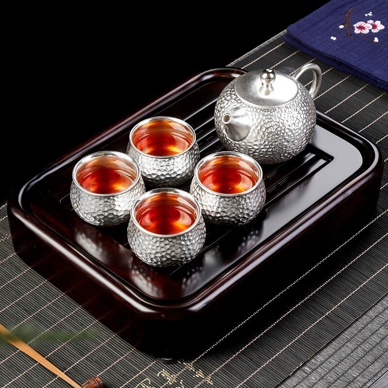 Absolutely stunning craftsmanship! The hammered finish gives such elegant texture, and the included silver leaves are a beautiful bonus. Makes every tea session feel like a luxurious ceremony.