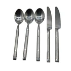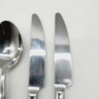 Have some wear. 3 dinner Spoons 7 3/4" & 2 dinner knives Please see attached photos