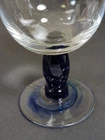 Set of 2 hand-blown glass water/wine goblets featuring a contemporary design with cobalt blue optical dots in the stem and a swirled base. The goblets are round in shape, cobalt blue & clear in color, and have a capacity of 10 fluid ounces. Each goblet is 8.25" tall, with a 4" width. Made in the United Kingdom, these stylish goblets are ideal for all occasions and add a touch of elegance to any table setting.