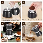ähnliche Gegenstände Description Description: 【Enjoy Coffee, Perfect Gift for Coffee Lovers】Make rich and delicious coffee in the comfort of your home with our 3-cup Moka Pot. With a 50ml cup capacity per cup and a total of 150ml/3 cups, this mocha coffee maker is the perfect gift, whether for you or the coffee lover in your life. 【High-quality Materials, Protecting Your Food Safety】Our aluminum espresso machine is made of durable aluminum, which does not rust or scale, safe and healthy, sturdy and durable, supports direct contact with food, and the heating process It does not produce any toxic or harmful substances and has no impact on the human body. 【Designed for Stovetop Use, Simple and Convenient】 This coffee maker is designed for stovetop use, allowing you to control the brewing process and create your own coffee masterpiece. It's a great addition to any kitchen. Whether you have a gas range, an electric range, or even a camping stove, brewing the most delicious espresso is easy. 【Humanized Design to Ensure Your Use Safety】 The espresso machine is humanized in design, and the Moka pot is equipped with a heat-resistant handle, which can safely and easily pour freshly brewed coffee. 【Easy to Use】This coffee maker makes brewing easy! Just fill the base with water, place the coffee grounds in the basket, screw on the top, and place on the stovetop! Easy to clean after use, just rinse with water to clean, easily make espresso and enjoy the Italian espresso flavor. Specifications: Coffee Filter Pot Capacity: 150ml Product Material: Aluminum Alloy Product Usage: Home/Office/Camping, etc Weight 2.3kg Package Includes: 1 x Mocha Pot 150ml 1 x Electric Stovetop 1 x Manual Coffee Grinder 1 x Spoon 1 x Glass Coffee Beans Bottle 1 x Filter Paper Payment 1. We only accept payment via PAYPAL. 2. Please make sure your shipping address is the same of your PayPal address before you pay. We will not be responsible for such a case if you change you shipping address as we have shipped your items out. Shipping 1. We don't ship to APO/FPO.Thanks for your kind undersatand. 2. All the items will be shipping within 1-2 working days after receiving the payment, except some holidays. 3. We will not be responsible for any custom delay or tax, because transit time is highly depended and provided by postal Service. Return Policy 1. If you are not satisfied after receiving the item, please contact us within 30 days for an exchange or refund. 2. All returned items must be in the original packaging with all components and accessories included, and you must provide us the return shipping information(The shipment or the tracking number). 3. Return shipping fee is to be paid by the buyers. We will not be responsible for any custom duty or import tax. Feedback 1. We maintain high standards of excellence and strive for 100% customer satisfaction ! 2. Feedback is very important to us. If you are not satisfied after receiving the product, please do not leave a bad review first, please contact us immediately, we will reply you within 1-2 working days to help you solve the problem, thank you for your understanding. Customer Service Time(China Time) • Monday - Saturday (9am-6pm) • Sunday - Closed ALL E-mails will be replied to within 24-48 hours. On Dec 16, 2025 at 23:52:43 PST, seller added the following information: