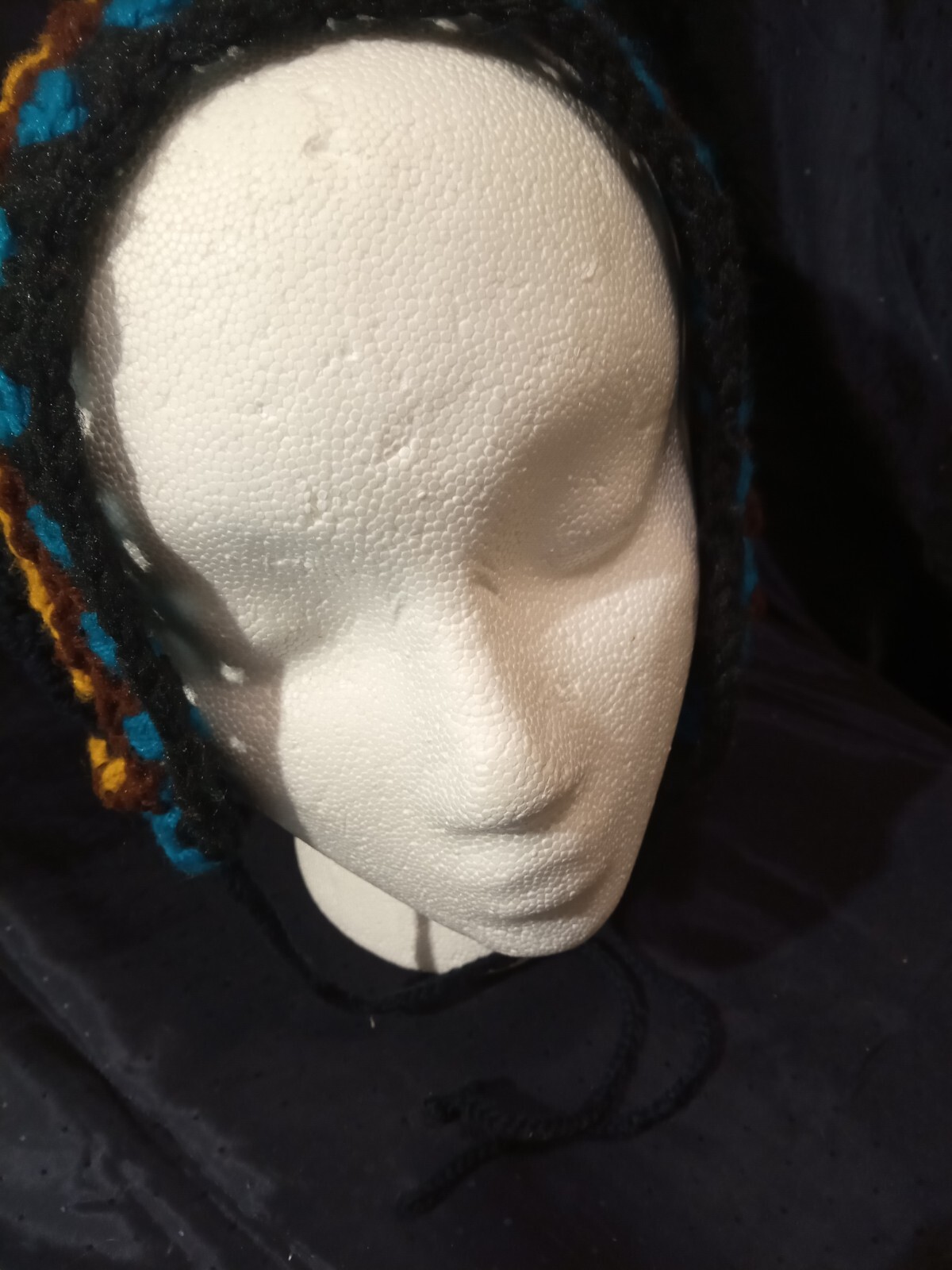 Very pretty black with multi colors head scarf/bubushka. Hand crocheted