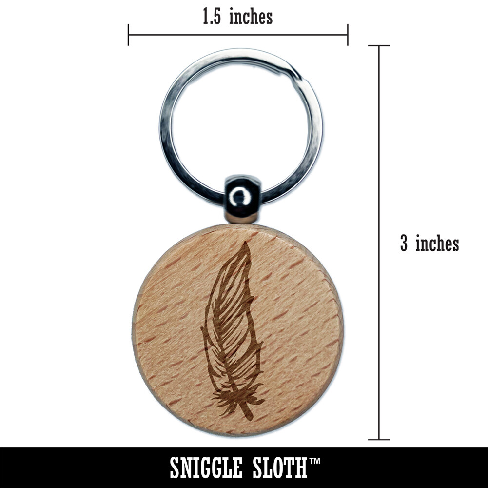 Hand Drawn Feather Doodle Engraved Wooden Keychain Charm Tag