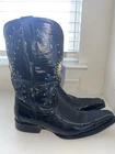 Excellent preowned condition JUGO Hand Embroidered Studded Men's Black Leather Cowboy Boots Size 9. These are very cool and so unique. Such beautiful embroidery details. Please see all photos as these are the exact items you will be receiving and feel free to request any additional photos. Please also note there are some studs missing as shown in the photos, but overall still in great condition.