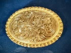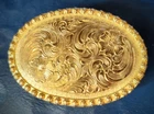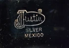 Beautifully Hand Engraved Western Silver Belt Buckle By Justin. Made in Mexico. 3" X 2 1/2" for Belts Up To 1 1/4" wide. 67 Grams.
