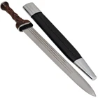 Specifications Overall Length: 21 Inches Blade Length: 14.5 Inches Blade Width: 1.5 Inch Blade Thickness: 3.62 mm Handle Length: 6.5 Inches Features Blade Style: Dirk Blade Construction: EN45 Handle Construction: Indian Sheesham Wood Includes: Scabbard 3 Fullers Historical Replica Description The Covert Detail Scottish Dirk features a hand-forged EN45 steel blade with blood grooves for reduced weight and enhanced handling. Its Indian Sheesham wood handle is intricately carved for a secure grip, accented by silver-nickel plated steel at both ends. The included wooden scabbard is wrapped in blade leather, with matching silver throat and chape. This dirk combines historical accuracy with striking craftsmanship, making it ideal for collectors and reenactors alike. Its attention to detail and balance of form and function ensure a truly authentic experience.