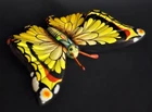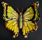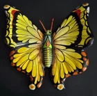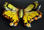 Vintage hand painted ceramic laquered butterfly wall art. Multi colored design. 6"L x 5.75"W at widest point. Hole on back for hanging. Signed by artist on back. Made in Tonala Jalisco Mexico. No chips, cracks or damage. Excellent condition.