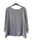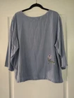 Chambray Top Women's Size XL Blue Hand Printed Floral Blouse Tencel Lyocell Brand- Focus Measurements in pics are pit to pit and full length Excellent pre-owned condition Beautiful pink flowers Art to wear
