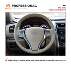 eBay NT Hand Stitch Black PU Leather Steering Wheel Cover for Nissan Altima Rogue ONE Car ONE Template Factory buy brand new steering wheels from all over the world, to make the templates which could 100% fit the corresponding car model. Personalized customization Many colors of thread and material for choose to customize. According to the colors and materials you could customize a new style cover. Multiple protection With soft leather and suede, guarantee a good grip while driving. With 100% fit Mewant cover, it won’t slip while driving. The Original Steering Wheel: N OTICE This cover Suitable car model: for Nissan Altima 2013 2014 2015 2016 2017 2018 / Rogue 2014 2015 2016 Suitable car model name and launch year are just a reference, different countries have different model name and launch time, so please pay attention to the steering wheel picture above, make sure they are the same , if not sure, feel free to contact us. Design elements: A+C: Black Smooth Artificial Leather B: Black Perforated Artificial Leather D: Black Thread If you want to change the material or color, please contact our customer service when you order. Features * Increased Safety :High quality leather, super soft & smooth , non-slip & durable. it provides great grip on the steering wheel, massage your palm and relieve drive fatigue , bring you a great touch and feel . * Top Quality: delicate workmanship, super technology and flat sewing stitches, The steering wheel gloves are the perfect way to transform the look of your vehicles interior while protecting your original steering wheel at the same time from wear and tear. Self-installation Needed: Our steering wheel covers need to stitch by yourselves, the installation tools, video and instructions were provided to assistant, please do NOT remove the original leather before the installation, or it will not fit. Attachment:Needle,thread,double sided tape,yellow small blade ,Th