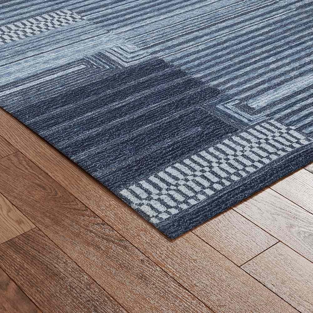 Handmade Color Dark Blue & Cream Moroccan Berber Wool Rug Design Carpet Area Rug