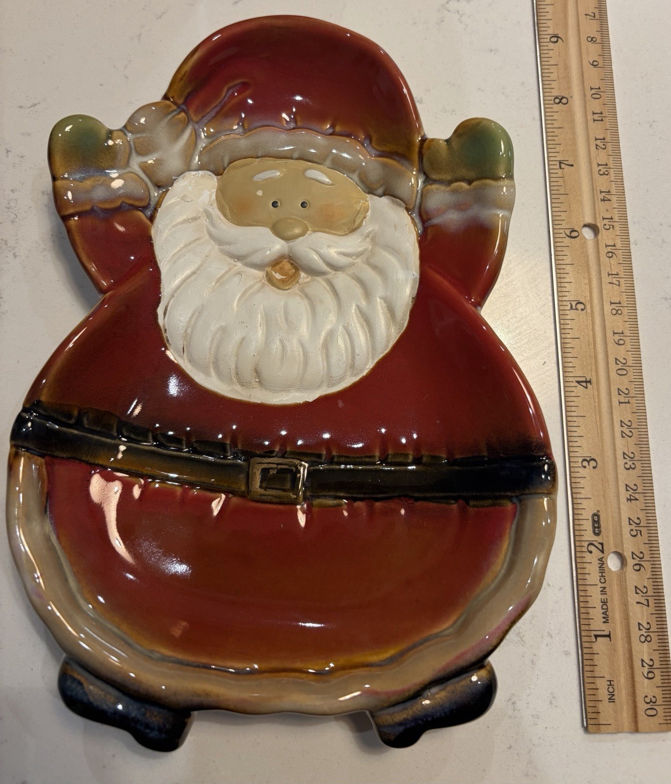 This hand painted and glazed earthenware Santa Claus nut or candy serving dish is the perfect addition to your holiday decor. The multicolor earthenware dish features a festive Santa Claus theme, making it a stylish and functional piece for any room in your home. Easy to clean with a damp cloth, this candy dish adds a touch of holiday cheer to your table decor. The hand painted & glazed finish makes this piece an eye catching item for Christmas season.