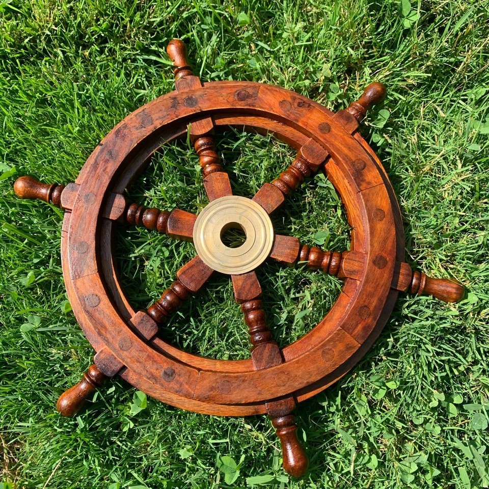 24" Brass Finishing Wooden Steering Ship Wheel Pirate Vintage Wall Boat Décor