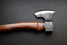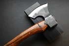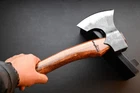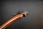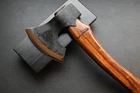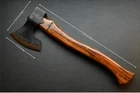Product Features: Robust Carbon Steel Blade: This axe features a sturdy carbon steel blade, providing exceptional strength and durability. The blade has a striking, rustic finish that highlights the hand-forged craftsmanship. Ergonomic Design: Featuring a rosewood handle for a comfortable and secure grip during use. Versatile Tool: Suitable for various outdoor activities like camping, hiking, and splitting firewood. Compact Size: Lightweight and portable, making it easy to carry and store. Durable Construction: The sturdy steel head and wooden handle ensure reliable performance over time. Specifications: Overall Length: 16 inches Blade Length: 5 inches Blade Width: 5.5 inches Total Weight: 3 lbs Hardware: High Carbon Steel Maintenance Note: Wipe the blade and apply oil or wax after use, and remember, while the leather sheath is a mark of class, it’s not a place for long-term storage - protect the edge from rust and remember, a well-maintained axe is a lifelong companion. AGE RESTRICTION: Item purchased must be used by 18+ years old people. Customer must be aware of the Federal and State laws for use and possession of this product.