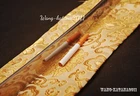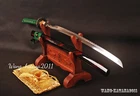 Product Parameter: Number: HE1014 Swordsmith: 懰旭 Package: 1sword with saya+1random bag Material: Clay tempered damascus folded T10 steel,百炼钢. Overall: 103cm/40.6" Blade: 70cm/27.5'' Handle: 26 cm/10.24'' Widdth: 3.2 cm/1.26'' Thickness: 0.7cm/0.28'' HRC(Hardness): 60 Blade: No blood groove,with delicate pattern on both side Seppa&Habaki: Brass Fittings: Iron tsuba+Alloy Samegawa: Genuine shark rayskin Construction: Maru Nakago: Full tang ,2 bamboo menuki vertically fixed handle,very firm Craft: Hand folded by 15 times,32768 layers, clay tempering,quenching,polishing,etc. Hamon: natural hamon ,formed by clay tempering process. The steel we use is not the normal steel with the truck or cars or other life electrics, the steel use for the blade contents much more carbon and the purity can not be comparable. * It's a functinonal sword.After tests, professionals can use it to cut bamboo,A4 paper and water bottles,etc. * All the fittings can be replacement. * The color and style of sword bag is random. * The sword stand is not include. Tsuba & Fuchi & Kashira & Habaki Saya Additional Service About us Delivery details Tsuba & Fuchi & Kashira & Habaki Alloy Tsuba Iron Tsuba ( extra $10) Brass Set ( extral $50 ) Alloy Fuchi & Kashira Habaki TSUKA-ITO & SAGEO Tsuka-ito is the wrapping of the tsuka and sageo (下緒 or 下げ緒) is a hanging cord that is passed through the hole in the kurigata (栗形) of a Japanese sword's saya. SAMEGAWA Samegawa(鮫皮)is the ray or shark skin wrapping of the tsuka (handle/hilt). Saya Please contact us before placing an order to see if there is any stock available, as well as any additional charges. OX Horn Saya Additional Service It's free for engraving English words, Chinese Characters and Japanese Kanji , etc. You need pay extral $20-30 for engraving patterns. Hamon We can add or remove the machine-made wavy hamon for free. Bo-hi ( Blood Groove) Usually thought be used for bloodletting only. It is also used to lighten the weight of the sword. We can add or remove Bo-hi for free Sharpness Most of our blades are sharp. We can also make the blade unsharpened for free if you require. Colored Blade If you want to change to a different color blade, please contact us before purchase. Matching Swords Set If you buy one katana, we can make a matching Wakizashi or Tanto for you. The price varies from different swords. Please contact us if you need make custom matching set. About us We have our own sword-casting factory. The factory is located in Longquan, a small town with a long history of sword-casting in China. Most of the famous Swords in China are made there. Rich raw materials, skilled technology, traditional sword casting technology from generation to generation. Manual production really takes a lot of time. We will prepare most products in advance ,and arrange delivery within about a week. However, sometimes the delivery time is delayed due to weather or raw materials,etc. we hope to get your understanding. Feel free to contact us to inquire about the status of your order. Each handmade sword is unique. Our swords are great for gifts or for your own collection. Our swordsmithing master makes every sword attentively, hope you can feel our sincerity. We will also give you the best customer service, any questions please feel free to contact us. Delivery details a) Import duties, taxes and charges are not included in the item price or shipping charges . These charges are the buyer’s responsibility. b) If you do not receive the package, or the package is damaged during transportation. We'll take care of it. Please feel free to buy. c) If it is mentioned in the product description that the package includes the sword bag or sword holder , the style will be random. The sword holder or sword bag on the ebay picture is the props we use for shooting. If you really like a style, please contact us before buying. d) If you have any problem after recieve the package (wrong size, wrong style, etc.). We always provide you with the best after-sales service. Please give us a chance to help you before you give us a bad feedback . Thank you very much!