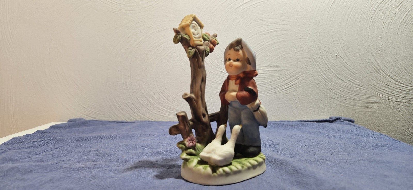 We are selling this wonderful porcelain figurine of a boy with an unbrella standing by a birdhouse while two ducks stare up at him. Please check out our other listings and if need be, we will combine shipping. We will ship the next day, if open and we only ship within the US. Thank you.