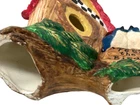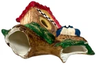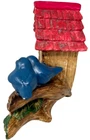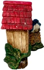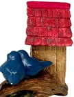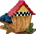Hand Painted Ceramic Bisque Figurine "Feed the Birds" Bluebirds Perched On Branch Atop a Wooden Sign Birdhouse. 7" x 6.5". Good Used Condition with Small Chips at Bottom, Roof, & Back of 1 Bluebird. Please See All Pictures.