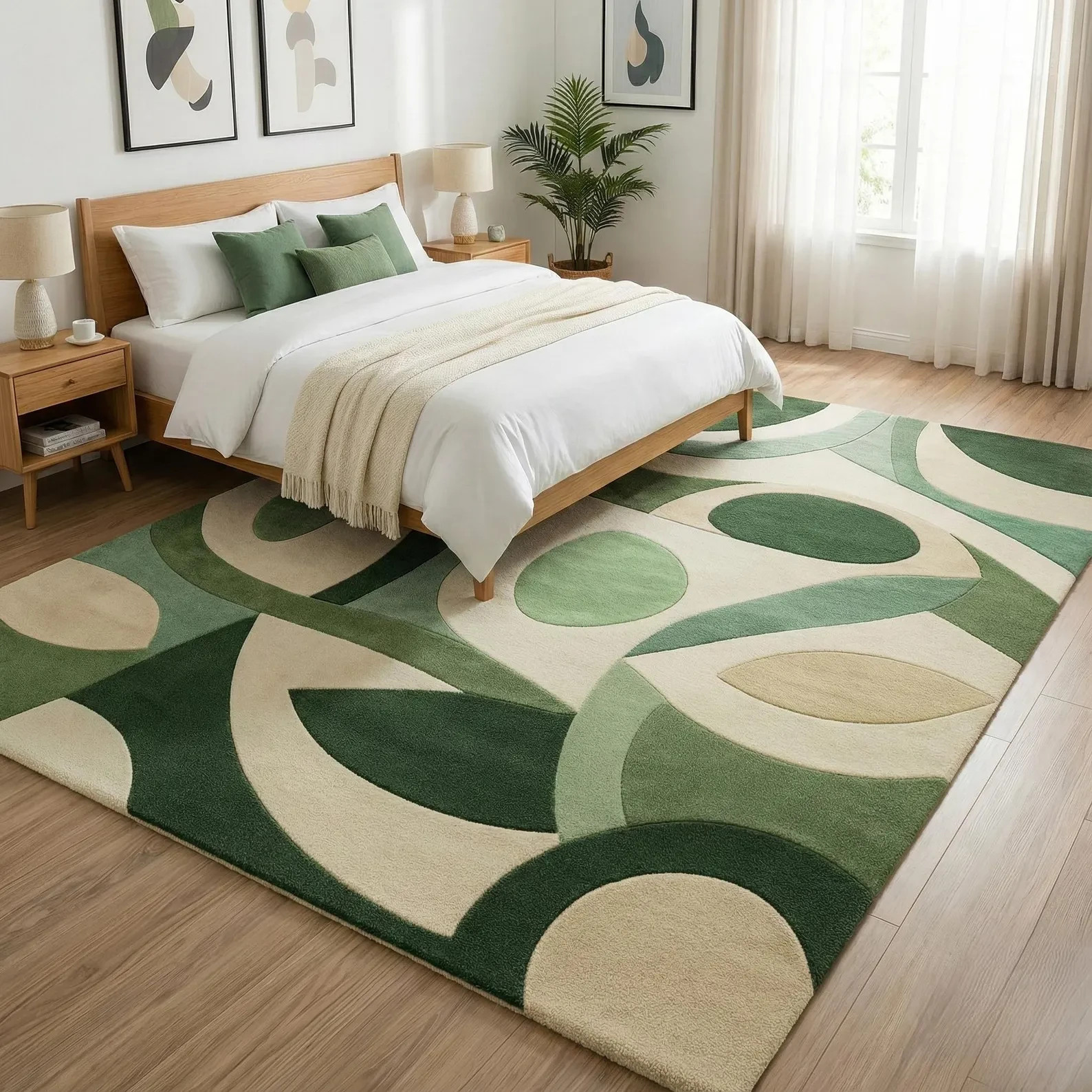 $ 60.83Minimalist Abstract Wave Rug – Japandi Hand-Tufted Wool Area Carpet in Neutral