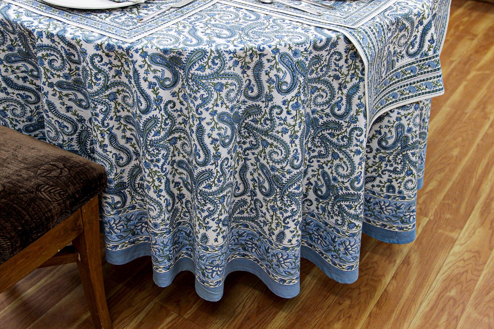 This handblock-printed cotton tablecloth is absolutely stunning! The craftsmanship by Indian artisans shines through in every detail, with rich, ethnic prints that add elegance to any table setting. I love that it’s eco-friendly and made from high-quality organic cotton—so soft yet durable. Perfect for sprucing up my dining area while supporting sustainable art. The colors are vibrant, and the design feels unique. A must-have for anyone who loves handmade, stylish home decor!