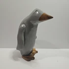 Handcarved Penguin Wooden Coastal Bird Flippers Arctic Gray