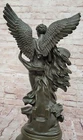 Handcrafted Eros & Psyche Bronze Statue – Love and Soul Greek Myth Figurine Gift Handcrafted Eros & Psyche Bronze Statue – Love and Soul Greek Myth Figurine Gift Condition : This sculpture is in perfect condition. Bronze Dimensions with Marble Base: Height 20.5" X Width 10" Marble Dimensions: Diameter 8" Height without base:19" Weight:21 LBS Inventory:35GTS85211753 This magnificent bronze statue of Eros and Psyche, designed by Miguel Lopez, also known as Milo, captures the timeless beauty and passion of Greek mythology’s most romantic tale. Eros, the god of love, embraces Psyche, the mortal woman who captured his heart, in a graceful and tender moment of divine affection. Handcrafted using the ancient lost wax method, this sculpture showcases extraordinary detail and flowing forms, from the delicate curvature of their bodies to the emotional expression conveyed in their faces. The piece is finished in a deep brown patina, enhancing its classical allure and timeless elegance. This large-scale artwork is mounted on a round black marble base, providing a sturdy foundation and contrasting beautifully with the warmth of the bronze. Signed by the artist, it makes a stunning statement in any fine art collection, classical décor, or romantic setting. Shipping Terms : Most of our items are shipped via USPS (United States Postal Service) mail or UPS. Most orders are shipped within 24-48 hours of purchase. Please be aware that not all items are available for USPS shipping due to size and weight. We do ship to Hawaii, Alaska, Canada, Puerto Rico, APO/AE, and U.S. Virgin Islands, however, an additional charge may be required. Please contact us before making any purchases in these areas. For Non-USA customers, you may be responsible for all duty, tax, brokerage fees that may be due upon delivery (shipping costs cover freight charges only). We also ship internationally. Please refer to the "Shipping and Handling" chart for the rates for each area. Payment : We accept just about any form of payment. PayPal, Master Card, Visa or American Express credit cards. Money orders, cashiers checks, and even personal or business checks. For governmental institutions, we will also accept a purchase order. Please understand that for personal or business checks we have to wait for the check to clear (usually 7 days) before shipping. Condition : New Detailed Hand Crafted Hot Cast Bronze Satisfaction Guaranteed. This is Stock Photo, Slight Color Variation!! Listing and template services provided by inkFrog