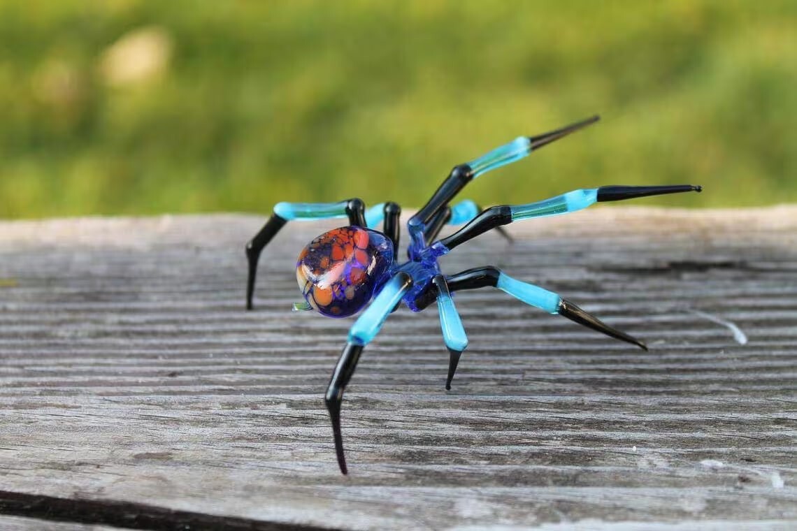 GLASS SPIDER lampwork Handcrafted Glass animal, Art Glass Spider Figurine Glass Figurine Animal Figure Glass Sculpture ----------------------------------------------------------------------------------------------- Approximately size is: 2.5 INCHES LENGTH (6,5cm) 2.7 INCHES HEIGHT (7cm) 2.7 INCHES WIDTH (7cm) Have you ever seen so many spiders of different colours and shapes at one place? Whatever your answear is, just take a look at these gorgeous and sometimes creepy little ones. We bet you won't resist a temptation to buy them all! So welcome to a glass spider world performed by means of lampworking technology. Delicately made and well-balanced blown glass figures represent by themselves amazing craftsmanship. So if you need a special gift, just mind that they are great to serve not only as halloween spiders but as a great and at the same time flamboyant zest to any interior for a modern apartment. If you know somebody who is really keen in collecting spider figures, it could be the best gift ever! We create a miniature spider of malleable hand blown glass. Different colours and high quality of materials enable us to create unique glass art pieces. And what is more important, we create sketches by ourselves in order to make realistically made glass insects. «Glass Symphony» is a small family private studio. We’ve been engaged with glass figures for three generations. My grandpa taught this craft my father who in turn taught me. Glass work is our life. And we feel really cool to be able to create different glass sculptures. Our artworks give other people real delight, improve theire mood, and could be found almost in every corner of the world!