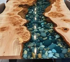 Handcrafted Live Edge River Table with Epoxy Resin and Pebble Art for Modern Home Decor