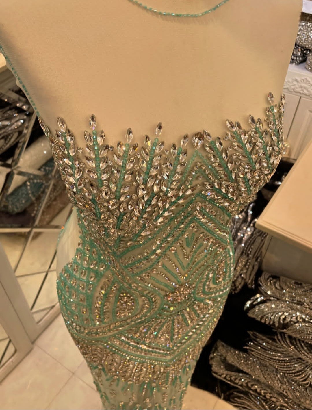 Handcrafted Long Beaded Fabric with Crystals for Dress Making