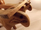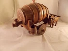 You are looking at a vintage Whiskey Barrel on a cart being pulled by two oxen. It was made in Nicaragua in Masaya. It has 6 barrel shaped shot glasses that hang by small nails from the frame of the cart. It is made completely of wood other than the nails and the three screws holding the yoke to the oxen. It is 21 inches long and is 10 inches tall. The barrel is 9 inches long. The shot glasses are 2 inches tall. The ox on the right hand side is missing one of his horns. The oxen look to be hand carved. On the barrel and the center pole of the yoke it says "Masaya" "Nicaragua" & "89" (not sure if it is 1889 or 1989). The barrels all have "Nicaragua" on them. This is a really cool piece of folk art that would be great in a man cave or in any bar. I am sure it was made for the tourists in the area, that being said I personally have never seen one before. Thank you for looking and feel free to email me with any questions. Please check out my eBay store for other great items.