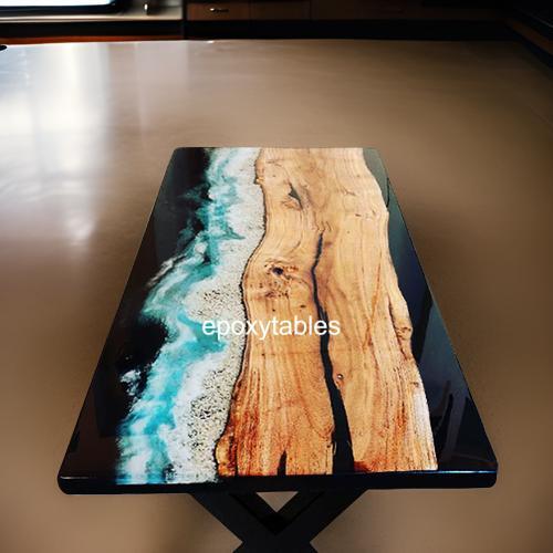 Custom Ocean Wave Epoxy Resin Table Top for Dining or Hallway