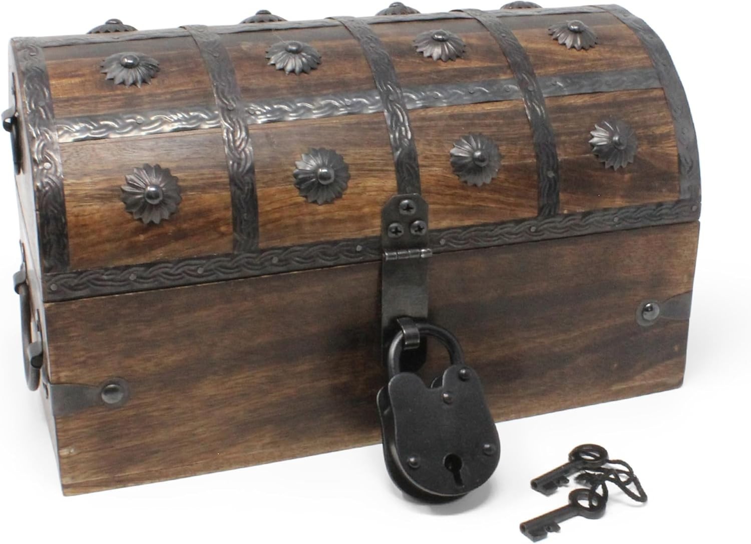 Handcrafted Pirate Treasure Chest with Iron Lock and Key – 11x6x6.75 Storage ‹ › ‹ › ‹ › ‹ › ‹ › ‹ › ‹ › ‹ › ‹ › ‹ › ‹ › Handcrafted Pirate Treasure Chest – 11x6x6.75 Storage Product Overview: Unleash your inner adventurer with our Handcrafted Pirate Treasure Chest. Made of exquisite teak and mango wood, this remarkable piece is not just a storage solution, but a stunning decorative accent for your home or office. Features: Handcrafted with care to ensure each box is a unique masterpiece. Decorated with intricate iron overlays and equipped with a solid 2.75-inch iron lock and skeleton keys, evoking timeless charm and authenticity. Dimensions: Medium size measuring approximately 11 x 6 x 6.75 inches, perfect for various storage needs. Each chest showcases slight variations in finish and placement of decorations, enhancing its one-of-a-kind appeal. Benefits: Ideal for pirate-themed parties, creating an atmosphere of adventure and intrigue. Perfect for imaginative play or as a stunning prop for productions. A captivating statement piece for home décor or office display. Great for treasure hunts or to store cherished keepsakes and mementos. Why choose our Handcrafted Pirate Treasure Chest? Engage your imagination and elevate your space with the allure of our Handcrafted Pirate Treasure Chest. This exquisite piece draws inspiration from the depths of adventure and exploration, beautifully merging form and function. Each unique chest is a testament to artisanal craftsmanship and is designed to be a conversation starter, whether displayed on a bookshelf or featured at a themed event. Embrace the timeless treasure hunt! Order your Handcrafted Pirate Treasure Chest today and secure a piece of elegance meshed with adventure! Shipping Free & Fast Shipping - We offer free shipping to most of the USA with a normal delivery time of 3-10 businessdays. However, due to various situations, additional delivery time (up to 3 weeks) may be required for some items. Alternative Carriers - We may use alternative carriers (e.g. USPS, FedEx, UPS, etc.) to ensure your package arrives safely and on time. Due to the use of multiple carriers, we are unable to provide a tracking number automatically. Handling Time - Orders are processed and shipped within 1-5 business days of receiving cleared payment. Shipping Restrictions - Shipping to Alaska, Hawaii, Puerto Rico, Guam, and other US territories may incur shipping charges or delivery restrictions. Please contact us before ordering, or your order can be refunded/cancelled. State Restrictions - There may be restrictions based on your state of purchase. For example, certain items may not be shipped to California due to state regulations. Contact for Tracking Updates - If you require tracking updates or have any concerns about the delivery of your order, please feel free to contact us, and we will be happy to assist you. Return Please see our ebay return policy. We do not accept return on most products. This is to avoid customers mis-using ebay returns. All sales are final. Please be sure to check the return policy listed at the top of the listing. In rare cases, we may accept returns, if the buyer pays both ways shipping and 20% restocking fee. If you are un-sure of return policy of a particular item, please ask before buying. Payment We accept all major credit cards, PayPal, and Apple Pay for your convenience. Your payment information is secure and encrypted to ensure a safe and seamless transaction. Please complete your payment within 3 days of purchase to avoid any delays in shipping. Feedback Your feedback is extremely important to us. We strive to provide the best products and customer service possible. If you are satisfied with your purchase, please take a moment to leave us a positive review. If you have any concerns or issues with your order, please contact us before leaving negative feedback. We are committed to resolving any problems and ensuring your satisfaction. Contact Us If you have any questions or concerns, please feel free to reach out to our customer support team. You can contact us through the eBay messaging system. We are available Monday to Friday, 9:00 am to 5:00 pm EST, and we will do our best to respond to your inquiry within 24 hours. Buy it now and enjoy a pleasant shopping experience! UPC: Not Set Unit Quantity: 1.0 count Items Included: Storage Box Suitable For: Keepsake,Treasure,Decoration Material: Mango Wood,Teak Theme: Not Set Features: Handmade,Iron Lock,Skeleton Key,Hinged Lid Brand: Unbranded Type: Storage Box Color: Brown Lining Material: Not Set Shape: Rectangle Capacity: 1 Piece Item Width: Not Set Item Length: Not Set Item Depth: 6 in MPN: Not Set Vintage: Not Set Handmade: Not Set Personalize: Not Set Customized: Not Set