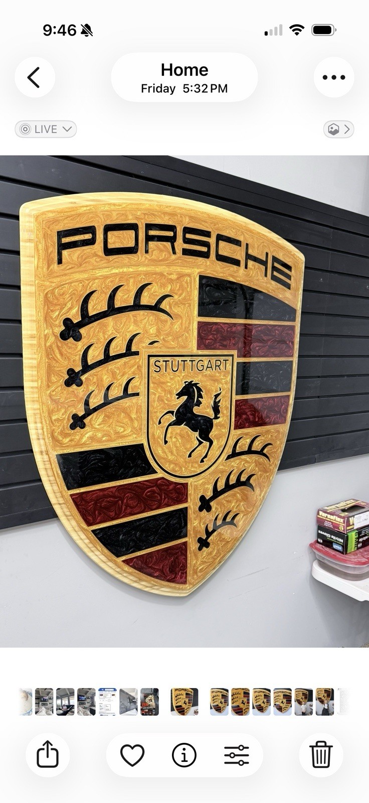 Bring true Stuttgart heritage to your garage, office, or showroom with this handcrafted Porsche Crest wall art, designed to elevate any luxury automotive space. Each piece is CNC-cut, layered, and finished by hand, featuring rich metallic epoxy swirls and deep black accents that give the crest incredible depth and movement. This is not a printed sign — it’s a premium, dimensional statement piece built for collectors and Porsche enthusiasts.