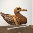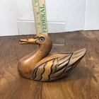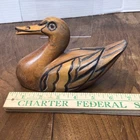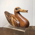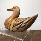 This product is a handcrafted small wooden duck, carefully crafted with attention to detail. Made from wood, this unique and charming collectible captures the essence of a duck with its intricate design. Perfect for bird enthusiasts or collectors, this handmade bird species figurine adds a touch of nature and artistry to any space. Small chip on tail. Please look at the pictures closely, as this is the item that you will receive.