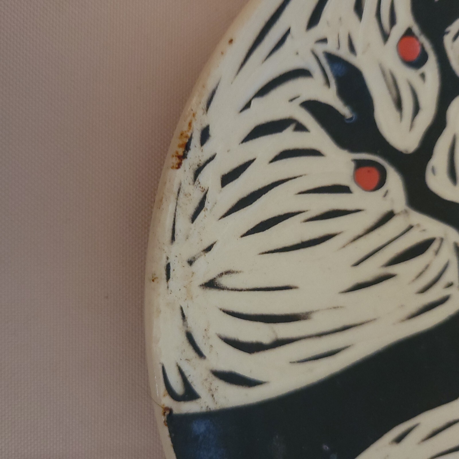 This gorgeous ceramic plate brings nature indoors with its intricate tree design and vibrant colors. The handcrafted textured surface adds depth, making it a standout decor piece for shelves or tables. Perfect for coffee or desserts, but also stunning on display. The artist's signature gives it a special touch—a must-have for anyone who loves unique, handcrafted art! Well-made and durable, it’s an elegant way to elevate your space.