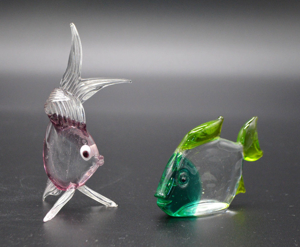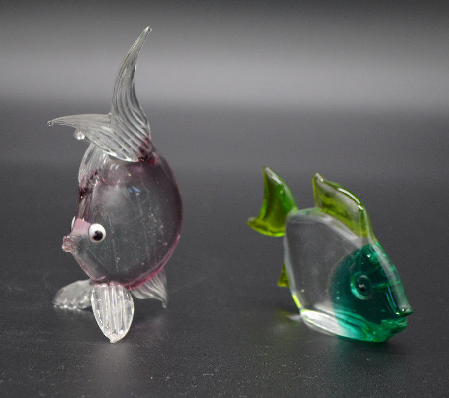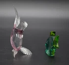 Two Handcrafted Art Glass Fish Figurines No wear Measurements: Green Fish: *Length: 3 1/8" *Width: 2" *Depth: 3/4" Pink Fish: *Length: 4" *Width: 2" *Depth: 1 3/4"