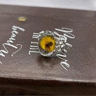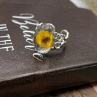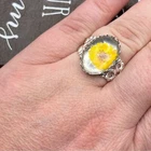 Handcrafted women’s yellow Daisy floral glass cabochon stainless steel filigree open back adjustable ring Handcrafted Daisy ring Handmade Yellow Daisy Stainless steel Glass cabochon 18x13mm Boho Bohemian Fall fashion Fall ring fall colors Adjustable Open back Lace band Filigree Cocktail Statement Gift for her