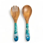 These handcrafted utensils with resin handles combine practicality with artistic flair, enhancing the functionality of your everyday meals. The set includes one 10 1/8" long spoon and one 10 1/8" long fork, all made of high-quality wood and resin. The vibrant colors and intricate designs make them a stylish addition to any table setting. HANDMADE & UNIQUE: Each set is a one-of-a-kind creation, showcasing distinctive patterns and characteristics in both the wood and the resin, making it truly unique. MATCHING PAIR: An ideal wooden salad server set, featuring one salad spoon and one salad fork, meets various serving needs and offers convenient storage with hanging holes. VIBRANT MULTIPLE COLORS: Our serving set comes in a variety of striking colors, adding a pop of color to your dining experience. A PERFECT GIFT FOR ANY OCCASION: Our handcrafted wood and epoxy resin salad servers make an excellent choice for Christmas, Mother’s Day, friends’ birthdays, anniversaries, or housewarming celebrations DIMENSIONS: 10 1/8"H x 2 3/4"W x 0.5"D (Approximately 26cm x 7cm x 1cm)