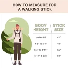walking sticks and canes are handcrafted, at a time, by local artisans. EACH HIKING STICK is handcrafted from solid wood and contains exquisite detail with a smooth polished finish. Each stick is handcrafted in the USA by skilled local craftsmen HIKING POLE IS LIGHTWEIGHT AND VERSATILE to provide safety, stability and durability while hiking or walking. The safety strap provides a secure grip while the tip provides traction on multiple surfaces WALKING STICK DUAL PURPOSE HANDLE is perfect for those who may need a cane handle but also the stick height. The dual handle is ideal for those who need help walking and may only use the cane handle on the occasion that they have stopped and are standing TREKKING POLE MAKES THE PERFECT HIKING ACCESSORY by handling any terrain. These walking sticks are wear-resistant and help enhance balance, stability, and endurance to explore the beauty of nature TREKKING POLE SIZING RECOMMENDATIONS: If under 4'5" a 41-inch stick is recommended; if under 5’4″ a 48-inch stick is recommended; If between 5’4″ and 5’11” a 55-inch stick is recommended and if over 5’11” a 58-inch stick is recommended